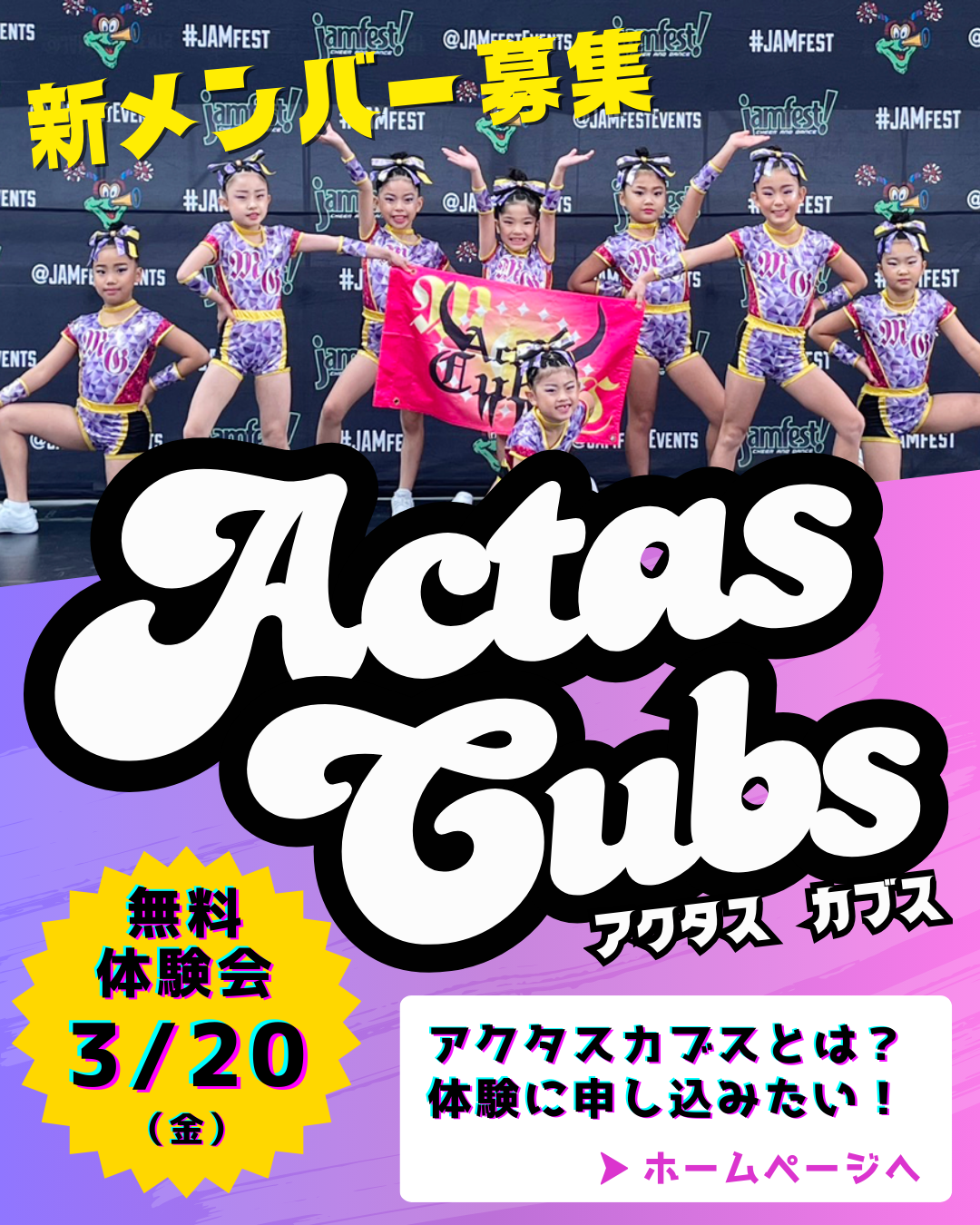 元気いっぱいのActasGirlsと一緒に、 熱いチアの世界を体験してみませんか? 皆さまのご参加を心よりお待ちしております!
